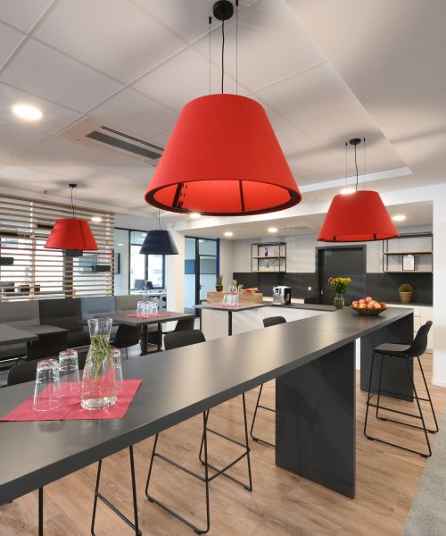 In jeder Etage steht eine Küche mit Kühlschrank, Kaffeemaschine, Quooker Wasserhahn & Co. zur Verfügung.