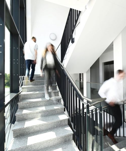 Bei der Planung des Gebäudes wurde darauf geachtet, möglichst viele und große Fensterfronten zu verbauen. Diese sorgen nicht nur für viel Licht, sondern können auch geöffnet werden für eine optimale Lüftung.